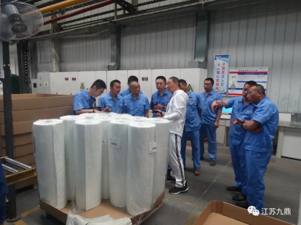 顧清波董事長一到山東九鼎,就先去了生產現場,了解池窯、拉絲、紗線、制品等生產流程的運行狀況,詢問了安全、質量、效率等方面的相關情況,關心了生產人員的工作生活狀況。