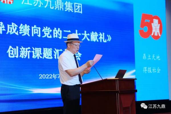 九鼎發展50年來,始終堅持把創新放在企業發展的首要位置,堅定不移實施創新驅動發展戰略,使企業在變局中開新局。集團黨委書記、董事長顧清波在致辭中表示,“聽黨話、跟黨走”,是企業五十年持續穩定健康發展的根本保證,今年是二十大的召開之年,九鼎將以這些創新課題為抓手,在市委市政府的正確領導和有力支持下,推動企業高質量發展,為如皋打造南通跨江融合發展樣板區貢獻力量,以優異成績向黨的二十大獻禮。
